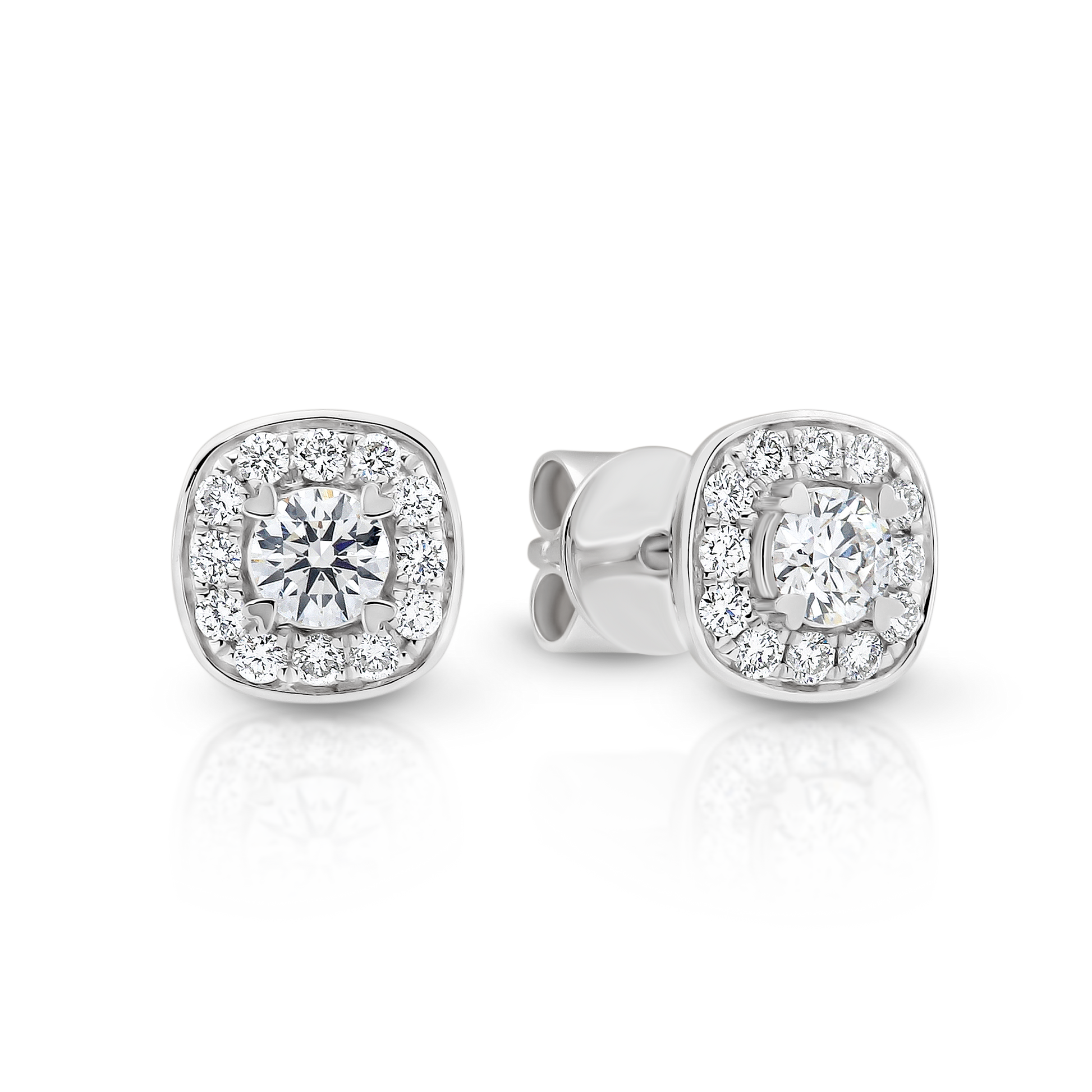 Passion8 18ct Cushion Shape Halo Stud Earrings with Heart Shape Prongs Total Diamond Weight=0.46ct GH/SI (2 x 0.14ct Centre Stones)